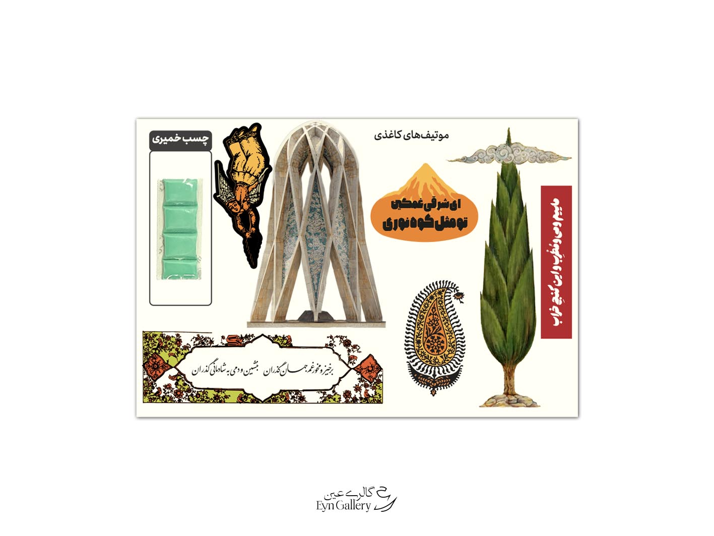 کارت پستال پاپ‌آپ ایران‌شهر طرح نیشابور – آرامگاه خیام جلد سرو