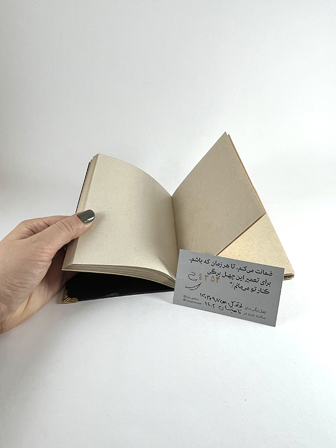 دفترچه یادداشت 354 اتمام موجودی متن سفارشی روی جلد متن مدنظر شما روی جلد، در کنار طرح فعلی، اضافه خواهد شد. => متن سفارشی داخل صفحات دفترچه میتوانید در صفحه اول، متن دلخواه اضافه کنید. => افزودن به سبد خرید مشخصات محصول قطعلوتوس ۹×۱۳ نظرات هنوز نظری ثبت نشده اولین نفری باشید که نظر میدهید ثبت نظر نظر شما راجع به این محصول چیست؟ دفترچه یادداشت 354 چه امتیازی به این محصول میدهید. ★ ★ ★ ★ ★ نام شما عنوان نظر شما متن نظر شما